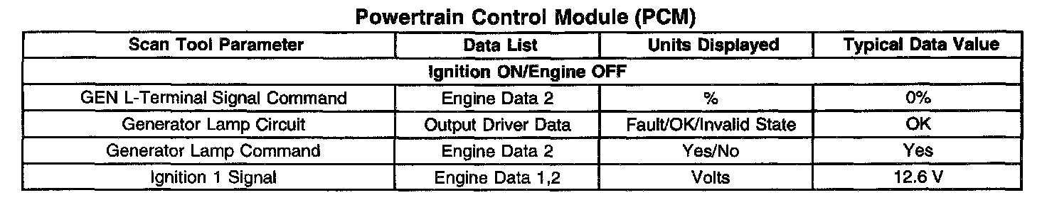 Scan Tool Data List - Powertrain Control Module (PCM)