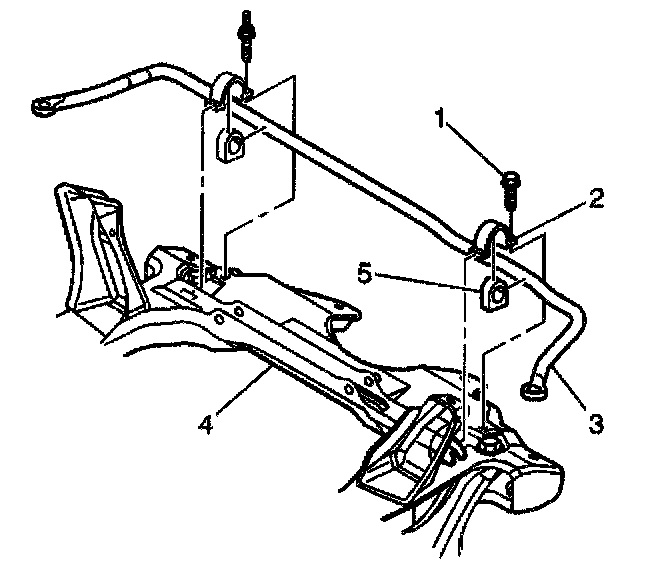 2. Install the stabilizer shaft insulator brackets (2) retaining bolts (1). Hand tighten the bolts.