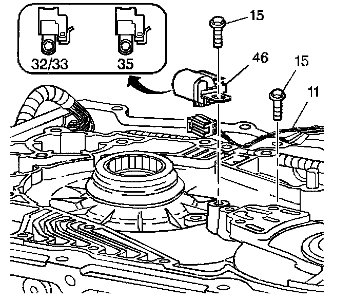 1. Assemble the input speed sensor (46) to the transmission case (51).