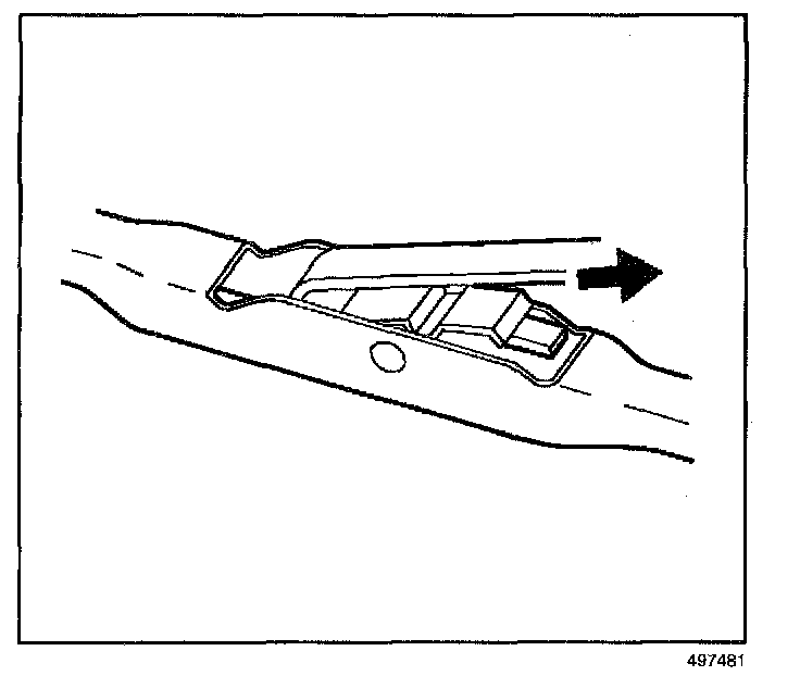 REMOVAL PROCEDURE1. Push in the button of the wiper blade clip and remove the wiper blade from the inside radius of the wiper arm.