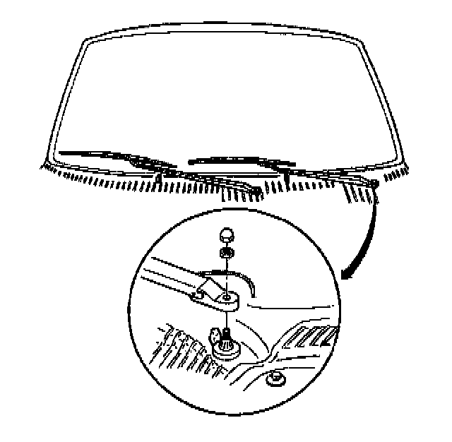 2. Instal the nut onto the wiper transmission drive shaft and the wiper arm.