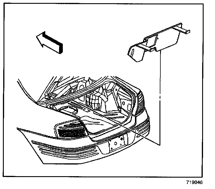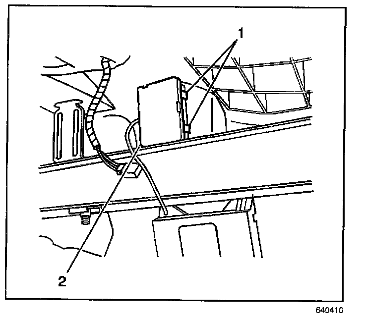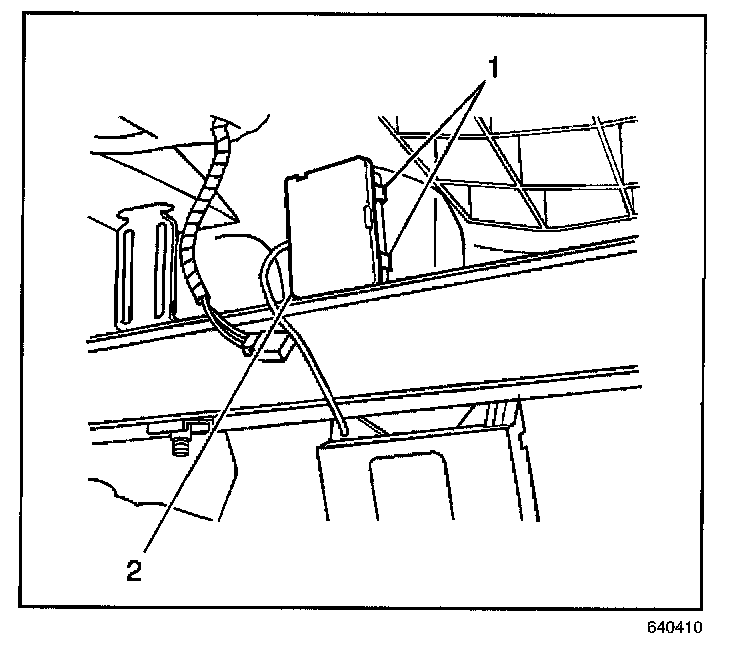 1. Snap the remote control door lock receiver module (2) into the slots in the rear compartment.