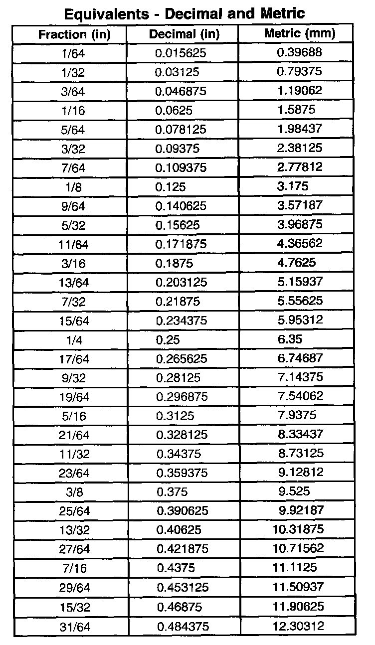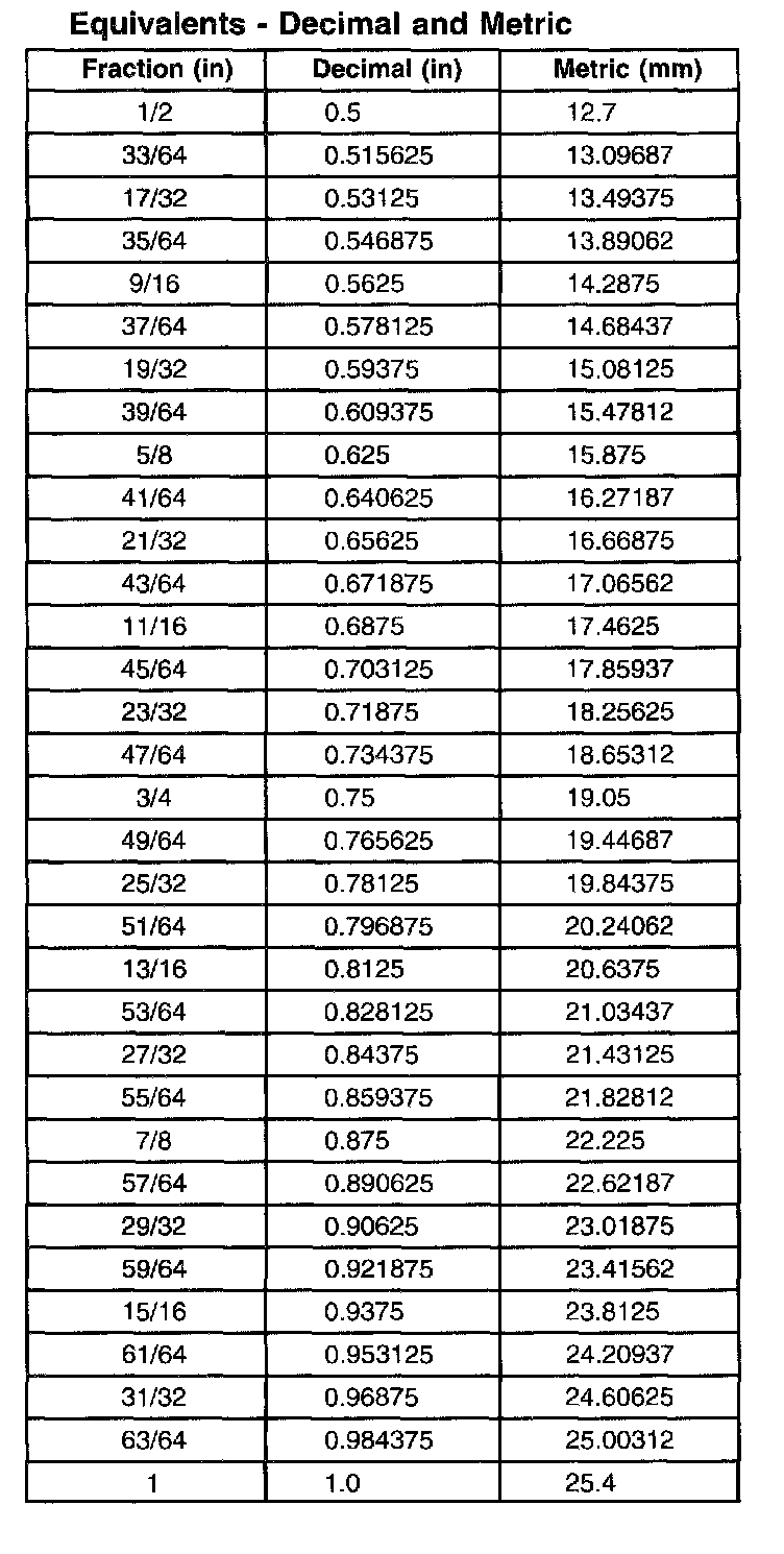 Equivalents - Decimal and Metric