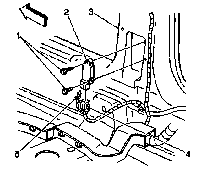 2. Install the SIS (2) to the center pillar sheetmetal (3).