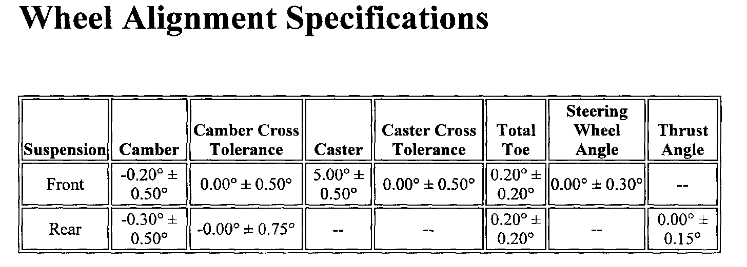 Wheel Alignment Specifications
