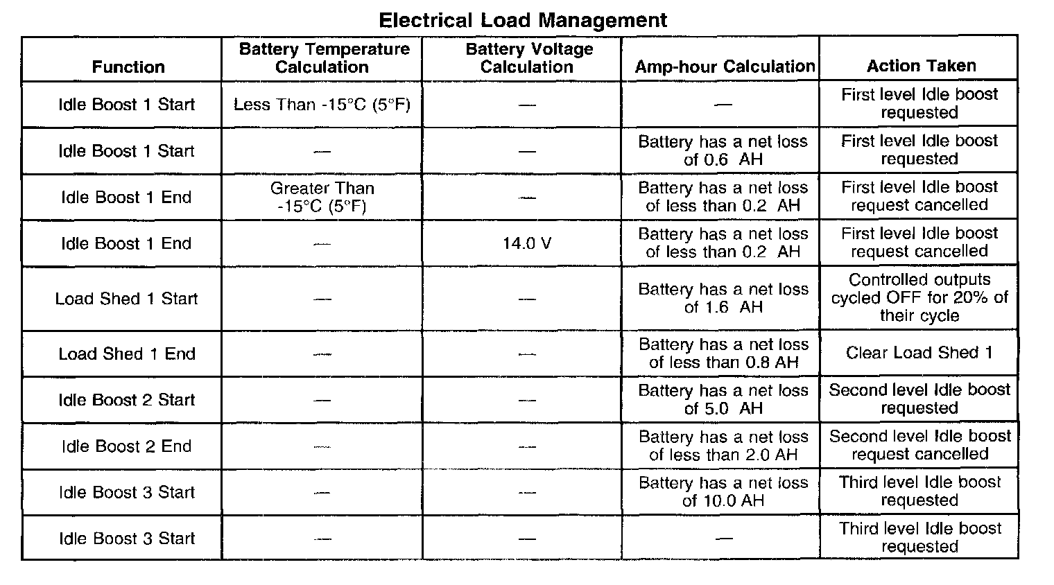 Each load management function, either idle boost or load-shed, is discrete. No two functions are implemented at the same time.
