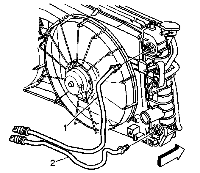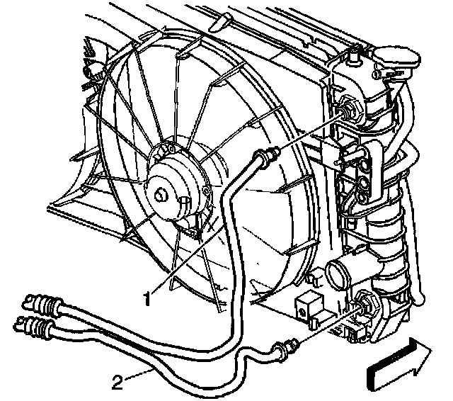 2. Push the transaxle oil cooler hoses (1, 2) into the radiator quick connect fittings, until a "click" is heard.
