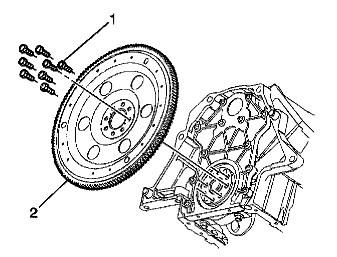 1.2. Install the flywheel bolts (1) finger tight.