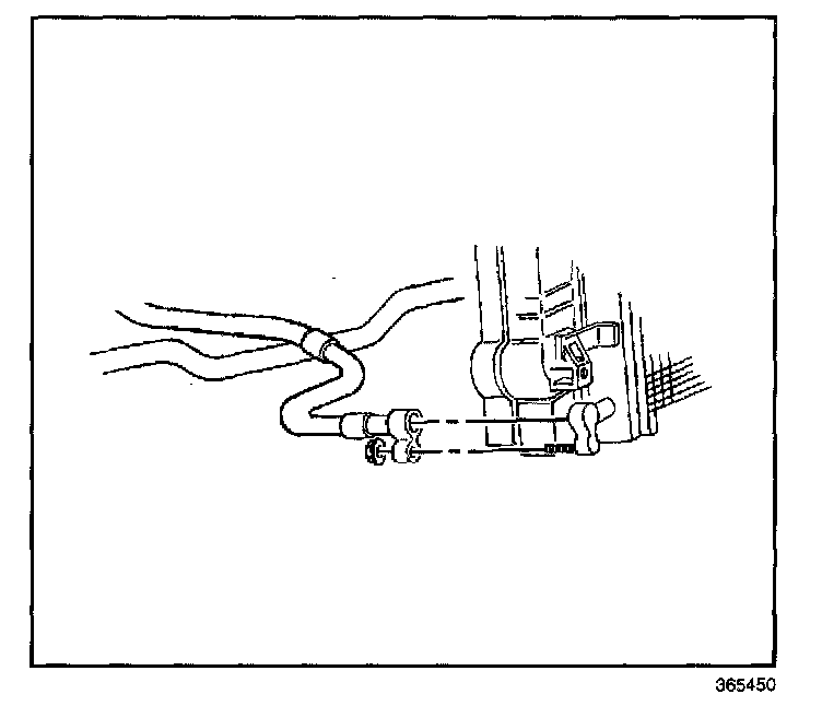 9. Install the A/C compressor hose assembly to the clip on the fan shroud.