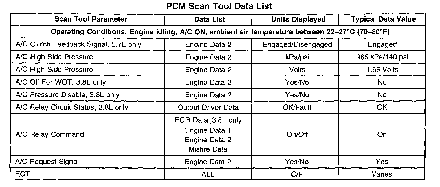 PCM Scan Tool Data List: