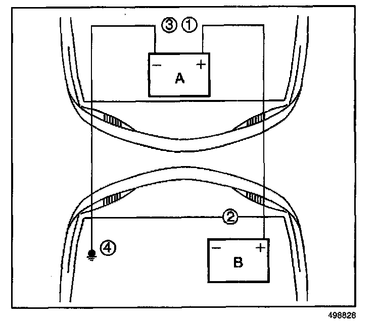 1. Position the vehicle with the booster battery so that the jumper cables will reach.