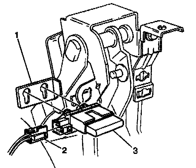 2. Align the buttons on the clutch pedal position switch (3) to the slotted holes on the bracket (1).