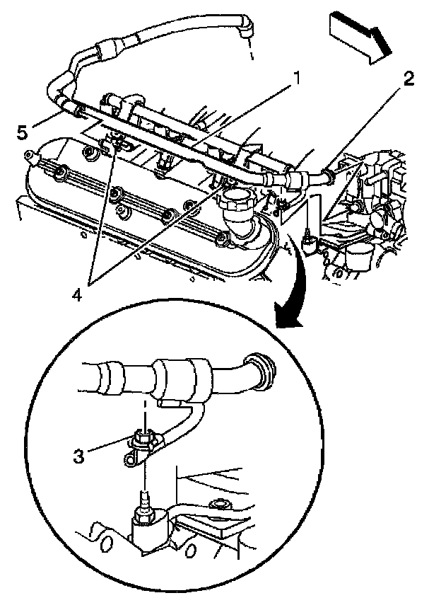 9. Release the PCV hose assembly from the mounting brackets (4).