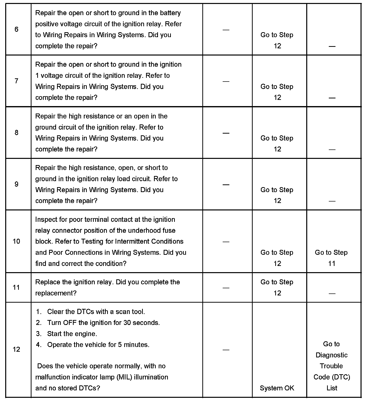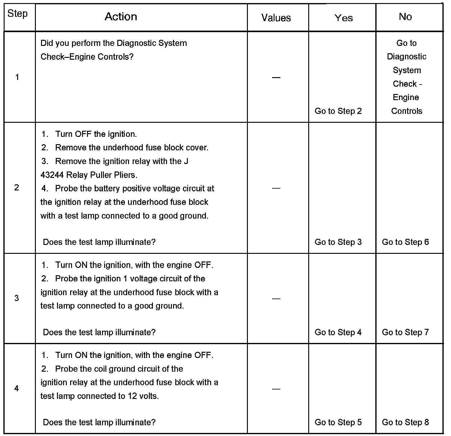 3. This step tests the ignition 1 voltage circuit of the ignition relay.