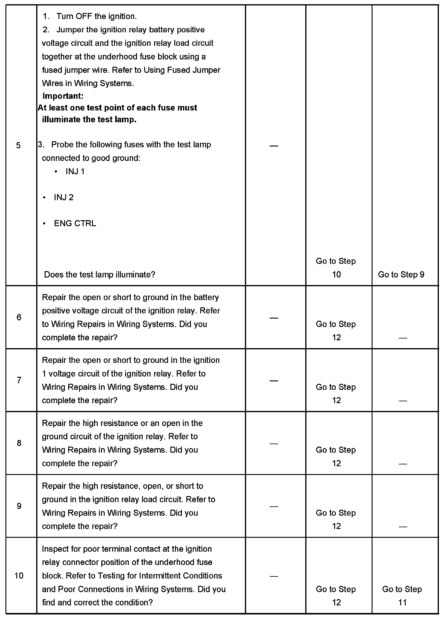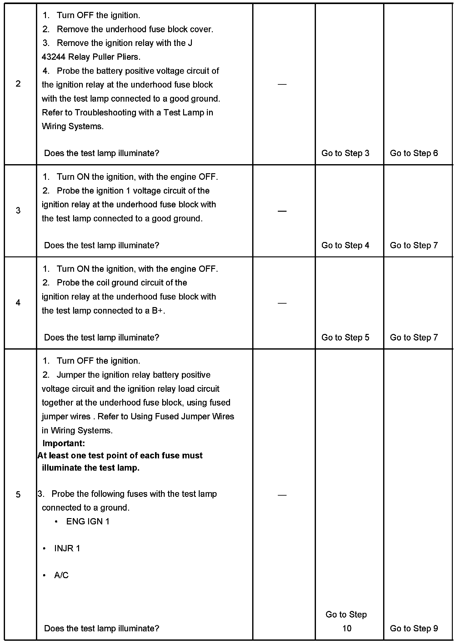 5. This step isolates the circuit from the ignition relay. All of the circuits at the relay are good if the test lamp illuminates.