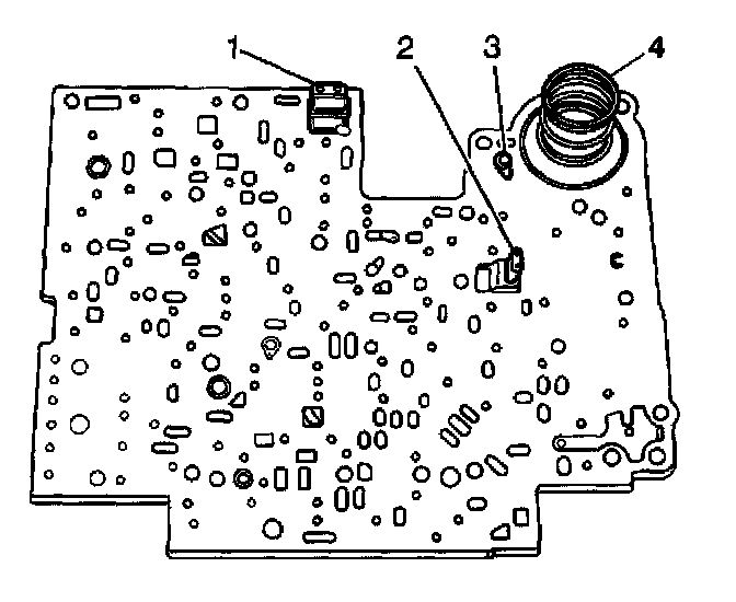 8. Place the 3-4 accumulator spring (4) on the spacer plate.