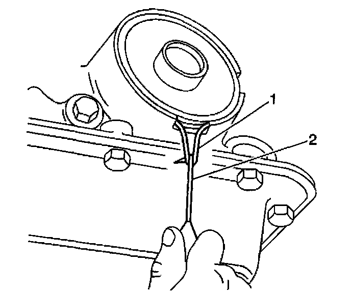 12. Remove the servo cover and O-ring seal. If the cover is hung up on the seal, use a pick (2) to pull and stretch the seal (1 ) out of the groove. Cut and remove the O-ring seal before removing the cover.