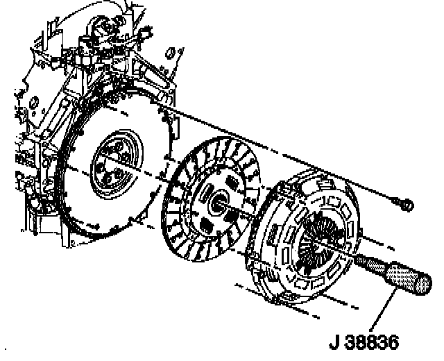 3. Install the J 38836 in order to align the clutch driven plate to the clutch pilot bearing.