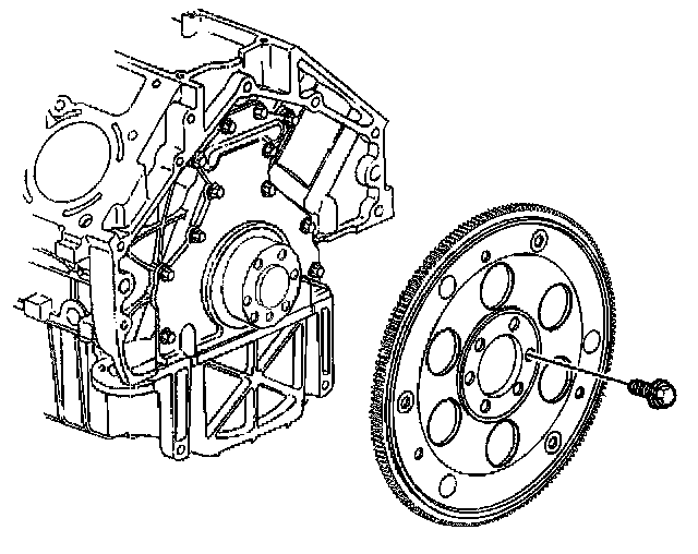 3. Apply threadlock GM U.S. P/N 12345382, Canada P/N 10953489, or equivalent to the threads of the flywheel bolts.