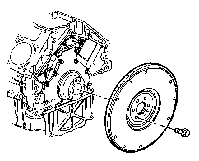 Important: Note the position and direction of the engine flywheel before removal. The flywheel does not use a locating pin for alignment and will not initially seat against the crankshaft flange, but will be pulled onto the crankshaft by the engine flywheel bolts. This procedure requires a three stage tightening process.