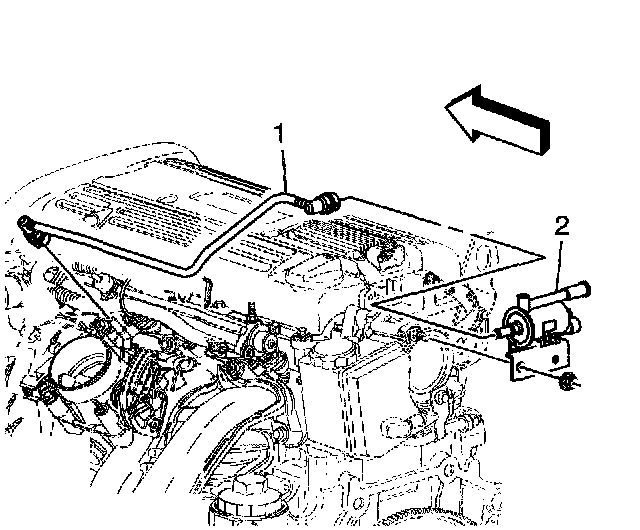 Important: Ensure that the rear metal tab of the EVAP emission canister valve is resting on the power steering pump metal body.