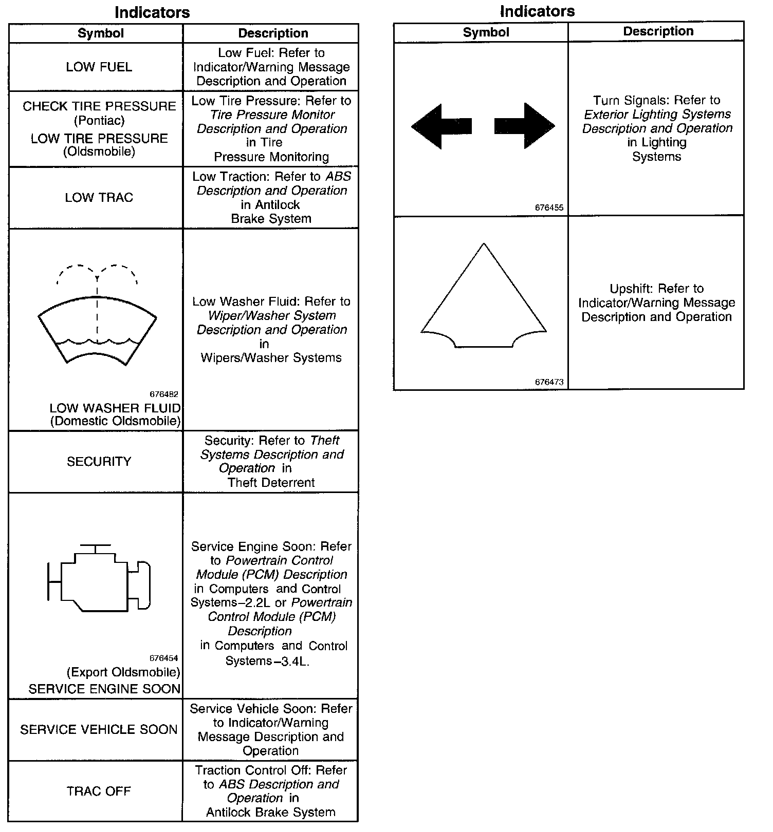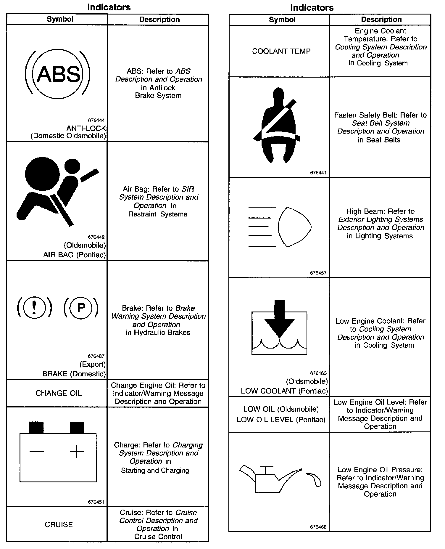 Instrument Panel, Gauges and Warning Indicators: Application and ID