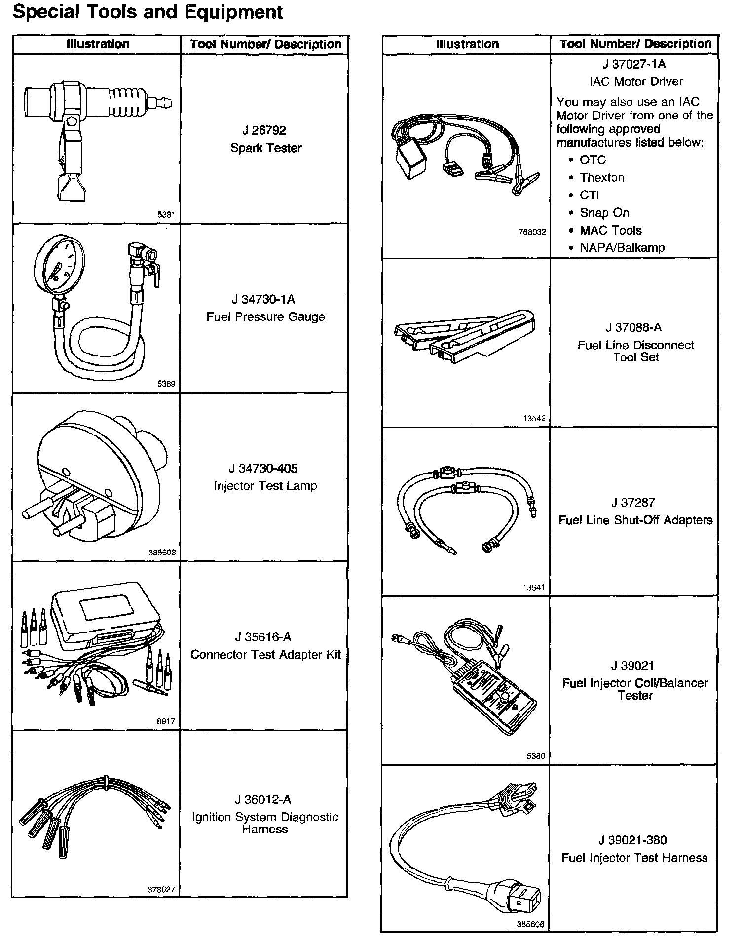Special Tools And Equipment Part 1: