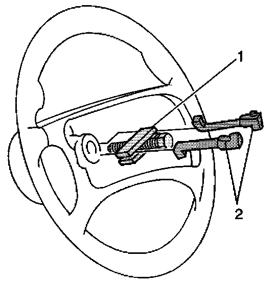 Notice: When removing the steering wheel with the specified steering wheel puller and the steering wheel adapter legs, ensure that the left leg tab is down and the right leg tab is up. This will prevent the steering wheel and puller from binding and will prevent damage to the steering column's integrity.