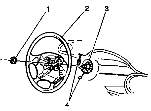 1. Route the electrical connectors (4) through the steering wheel opening.