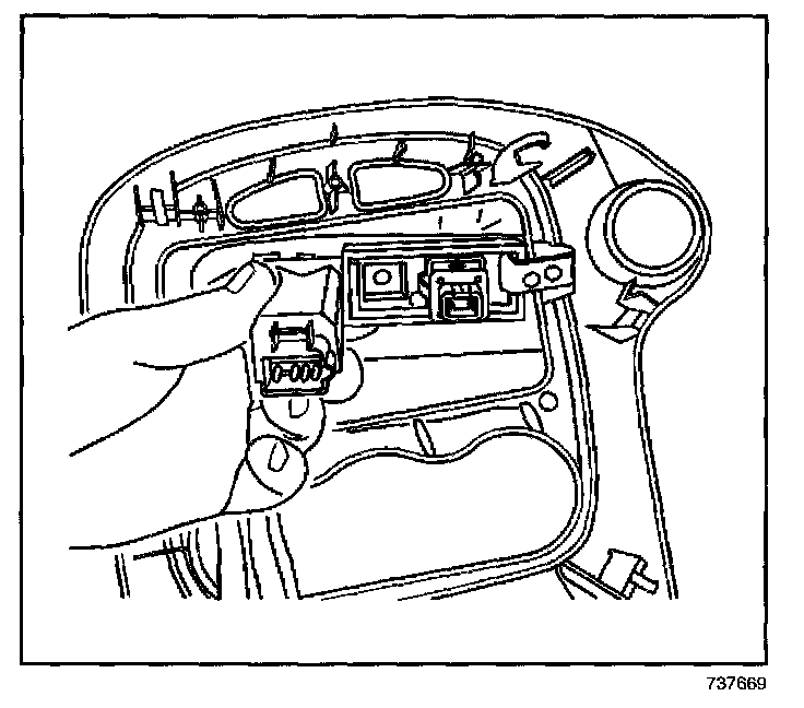 4. Depress and release the electronic traction control switch (ETS) retainers. Press the switch out with your thumb. Remove the ETS.
