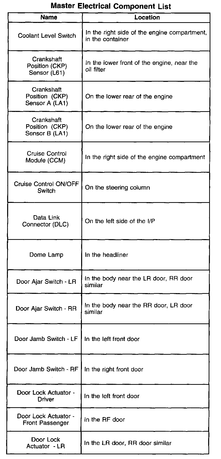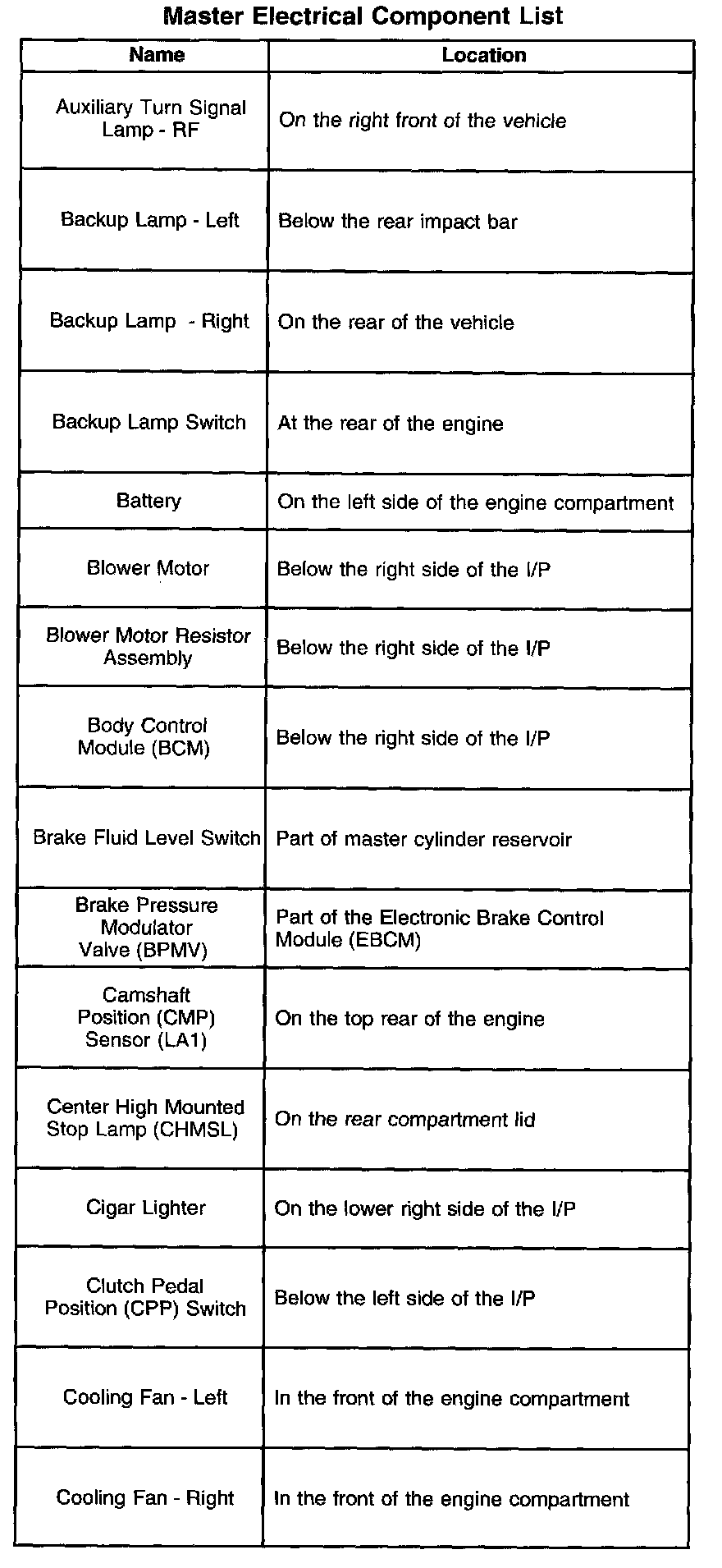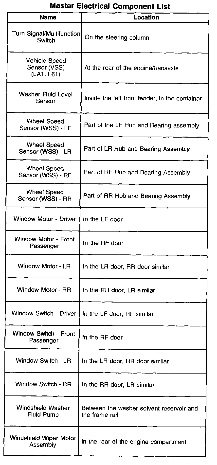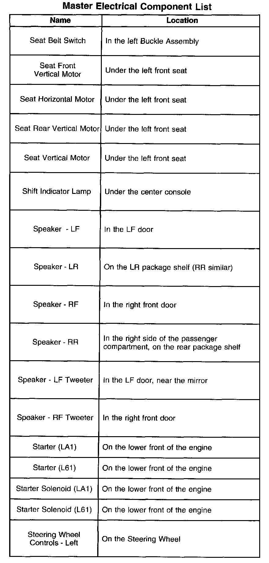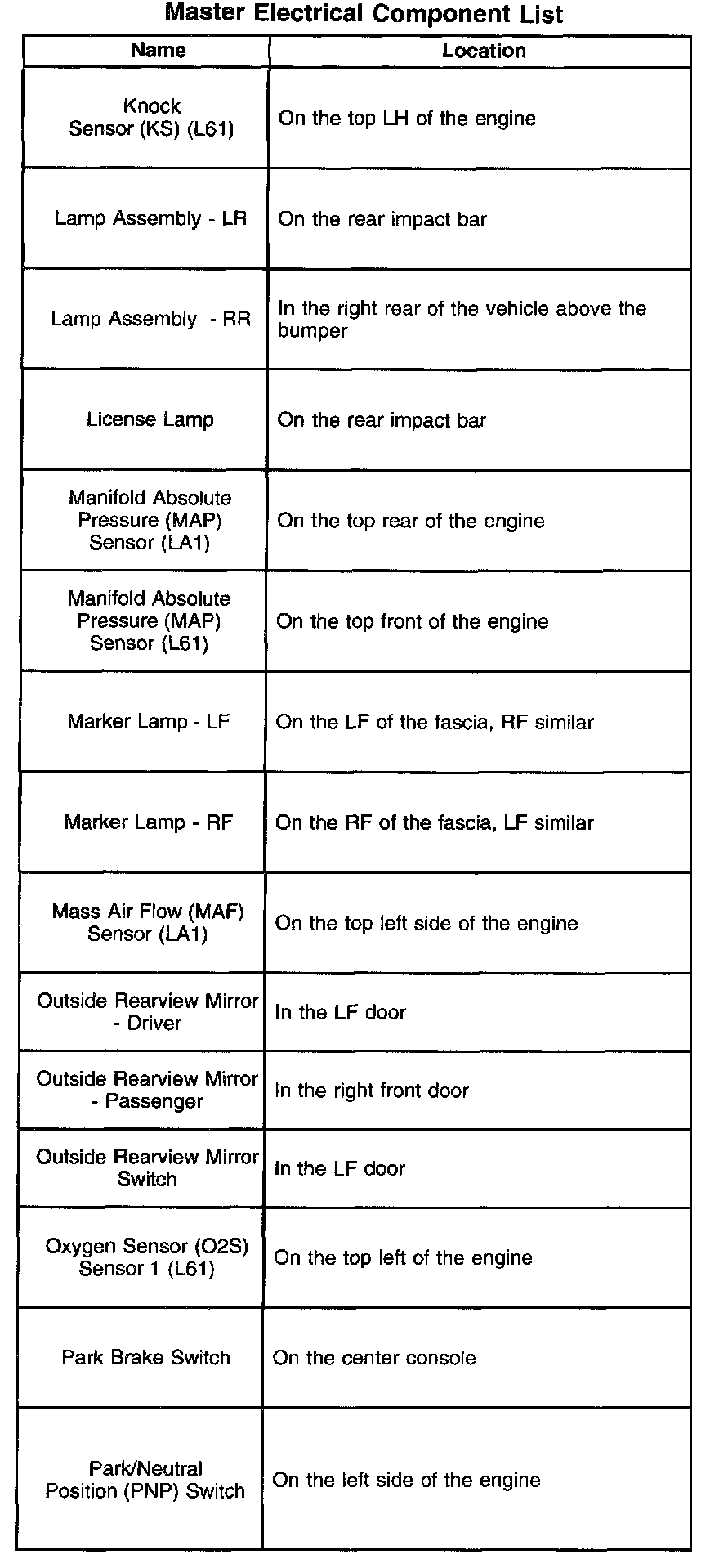 A - Z Master Electrical Component List