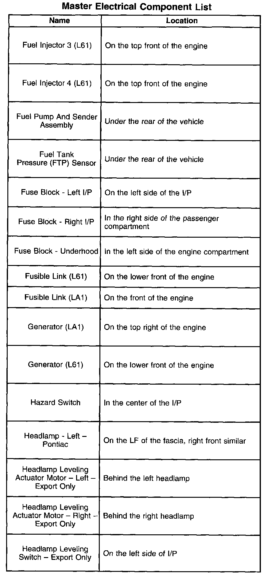 Fuel Injector 3 (L61) - Headlamp Leveling Switch-Export Only: