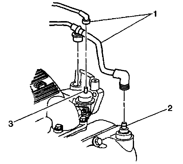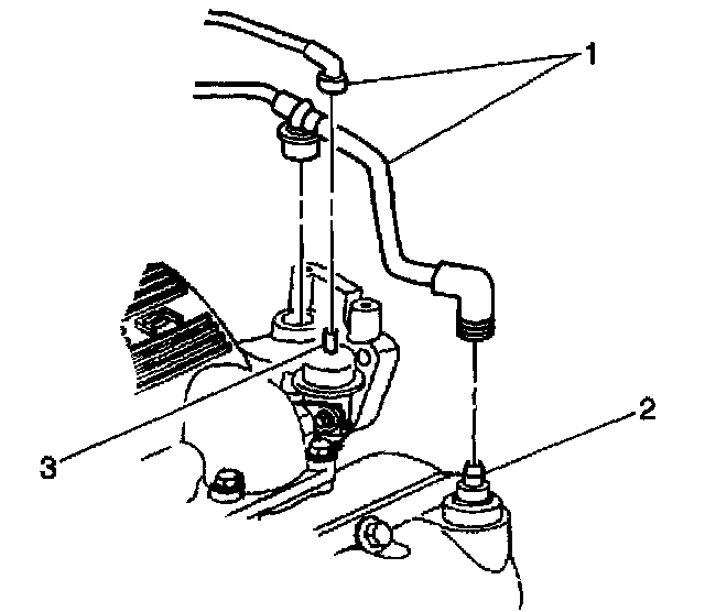 6. Disconnect the fuel pressure regulator vacuum hose (1) from the fuel pressure regulator (3) and the PCV valve (2).