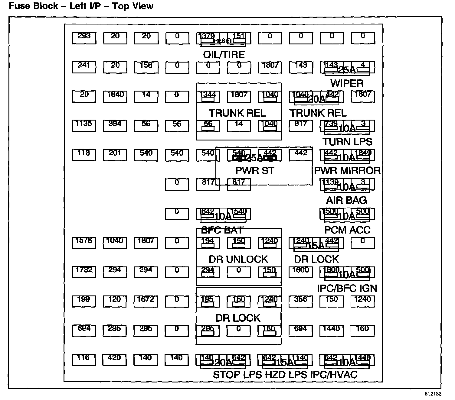 Fuse Block - Left I/P - Top View: