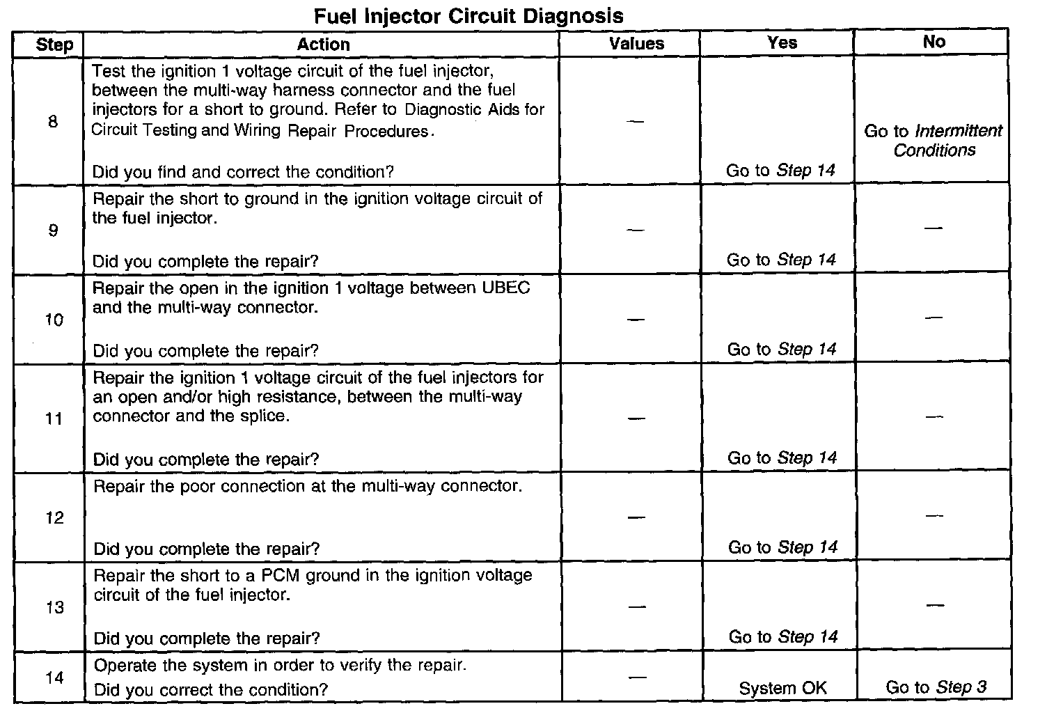 ^ Performing the Fuel Injector Coil Test may help isolate an intermittent condition. Refer to Fuel Injector Coil Test. Component Tests and General Diagnostics