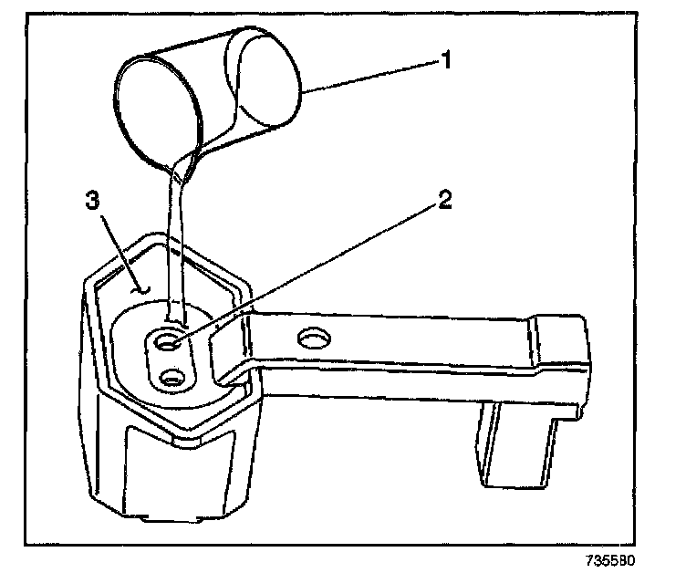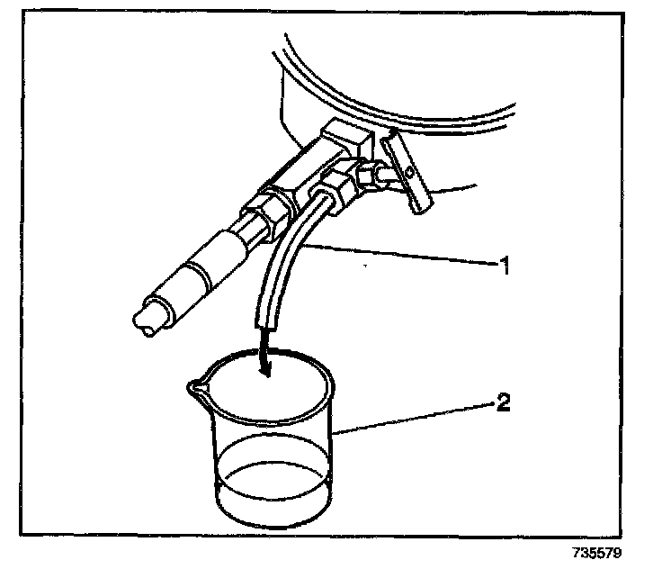 5. Place the bleed hose (1) of the fuel pressure gage into the 100 ml beaker (2).