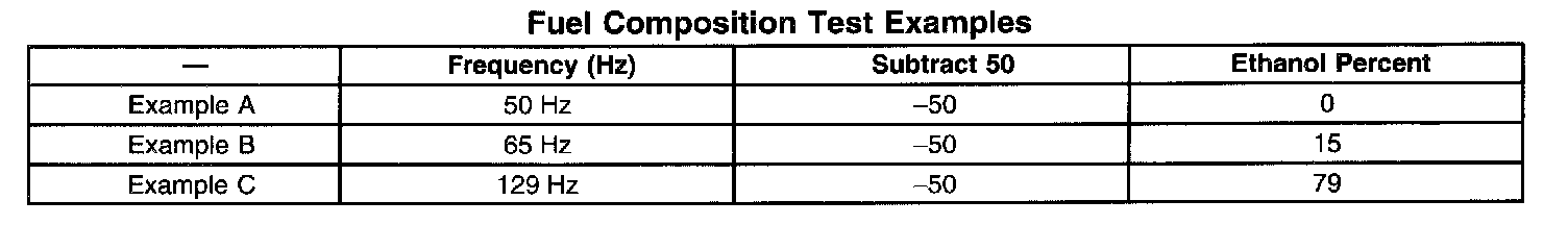 12. Subtract 50 from the reading on the DMM to obtain the percentage of alcohol in the fuel sample. Refer to the examples in the table.