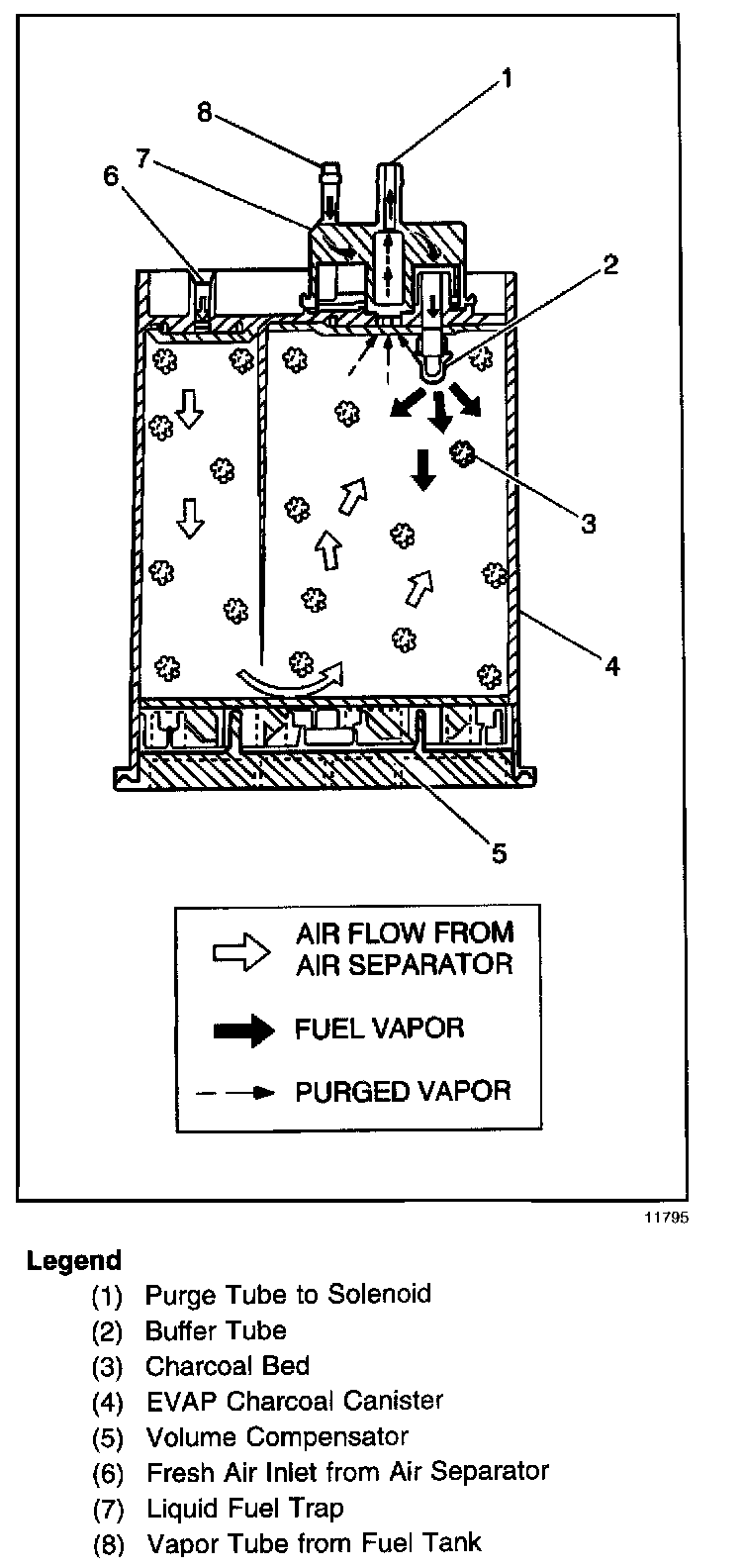 The canister is filled with carbon pellets used to absorb and store fuel vapors. Fuel vapor is stored in the canister until the Powertrain Control Module (PCM) determines that the vapor can be consumed in the normal combustion process.