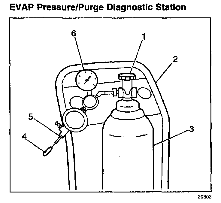 The J 41413 EVAP pressure/purge diagnostic station is used to help locate leaks in the EVAP system. It provides a clean, dry, regulated supply of nitrogen to pressurize the EVAP system. Refer to the directions on the cart for proper operation.