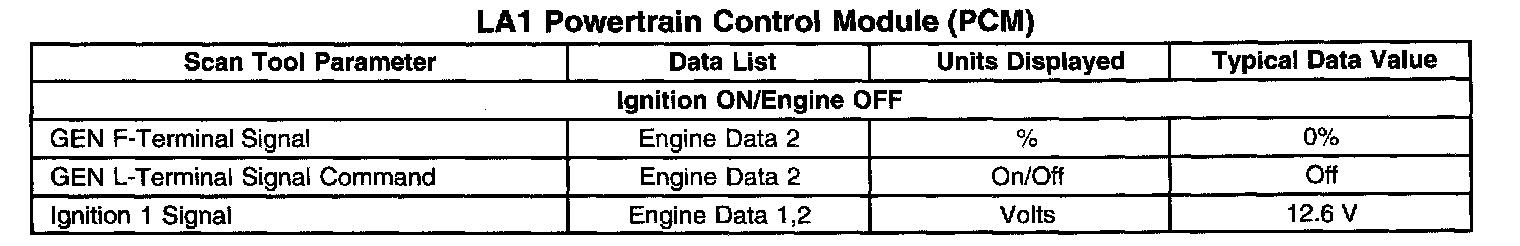 Scan Tool Data List - Powertrain Control Module (PCM)