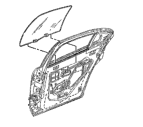 5. Remove the rear door window outer belt sealing strip. Refer to Sealing Strip Replacement - Rear Door Window Belt Outer (Rear Door Window Belt Outer Sealing Strip Replacement) .