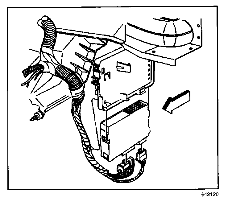 4. Push the BCM up and move the bottom of the BCM away from and out of the mounting bracket slot in order to remove the BCM.