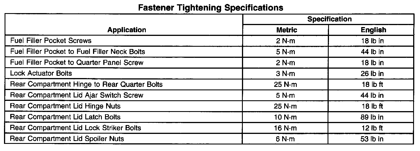 Fastener Tightening Specifications: