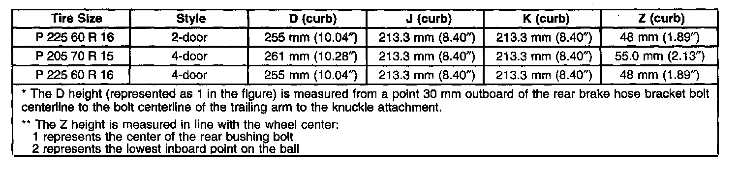 Ride/Trim Height Specifications
