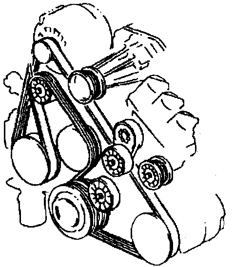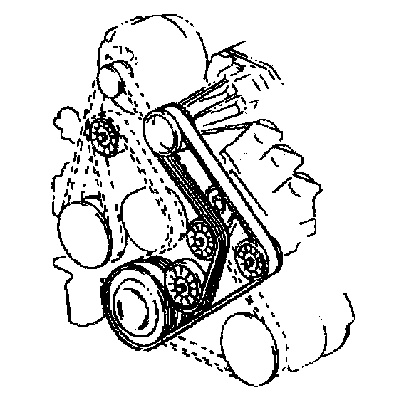 The supercharged 3800 engine utilizes two drive belts. The outer drive belt drives the supercharger. The inner drive belt drives the following components: