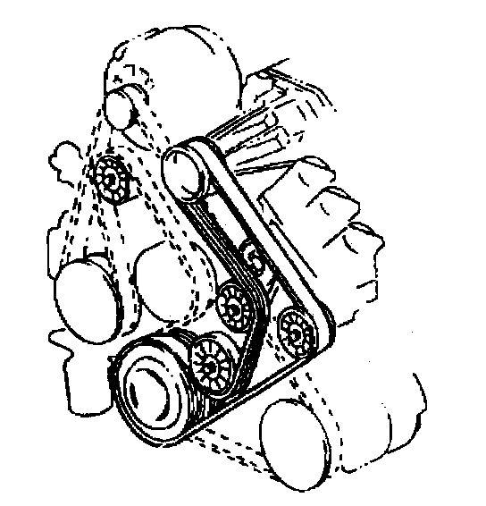 All driven accessories rigidly mount to the engine. Spring-loaded belt tensioners maintain the drive belt tension. Each drive belt has its own tensioner. A drive belt squeak, occurring when the engine starts or stops, is normal and has no effect on the durability of the drive belt. The drive belt tensioner can control the drive belt tension over a broad range of drive belt lengths, due to stretching. However, there are limits to the tensioner's compensation ability. Poor tension control and/or damage to the tensioner may occur after using the tensioner outside of its operating range. Replace the drive belt when this occurs.