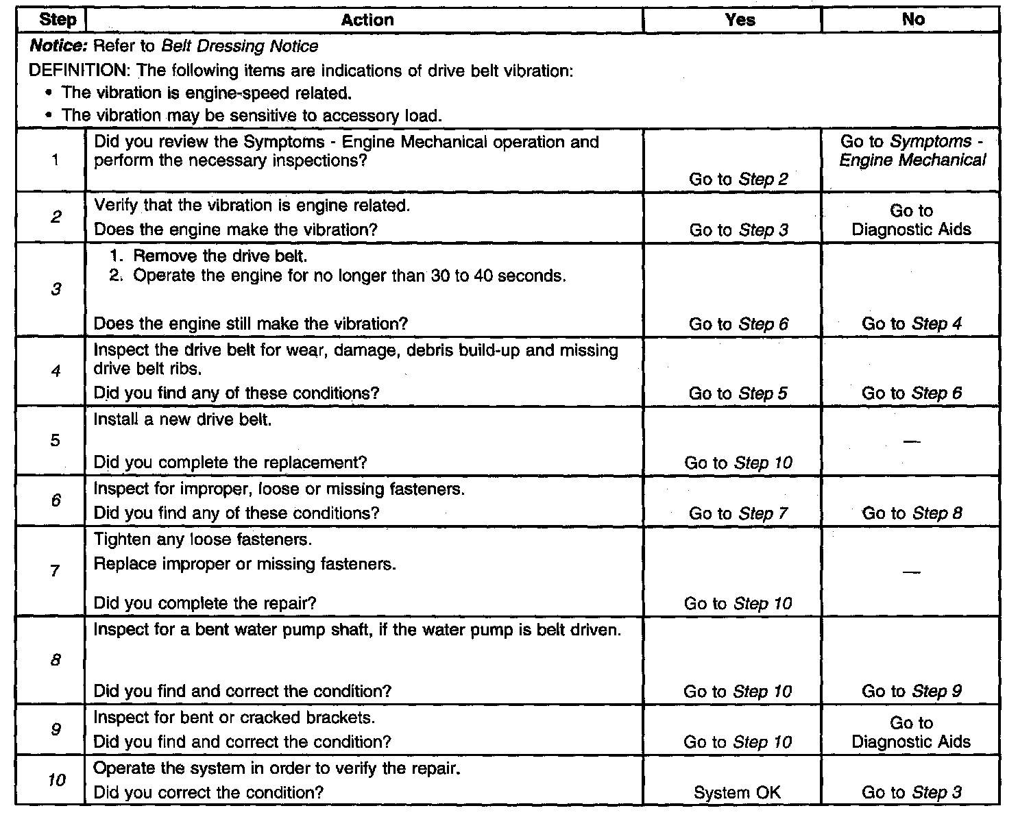 Drive Belt Vibration DiagnosisDiagnostic Aids
