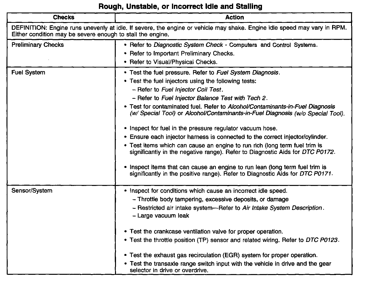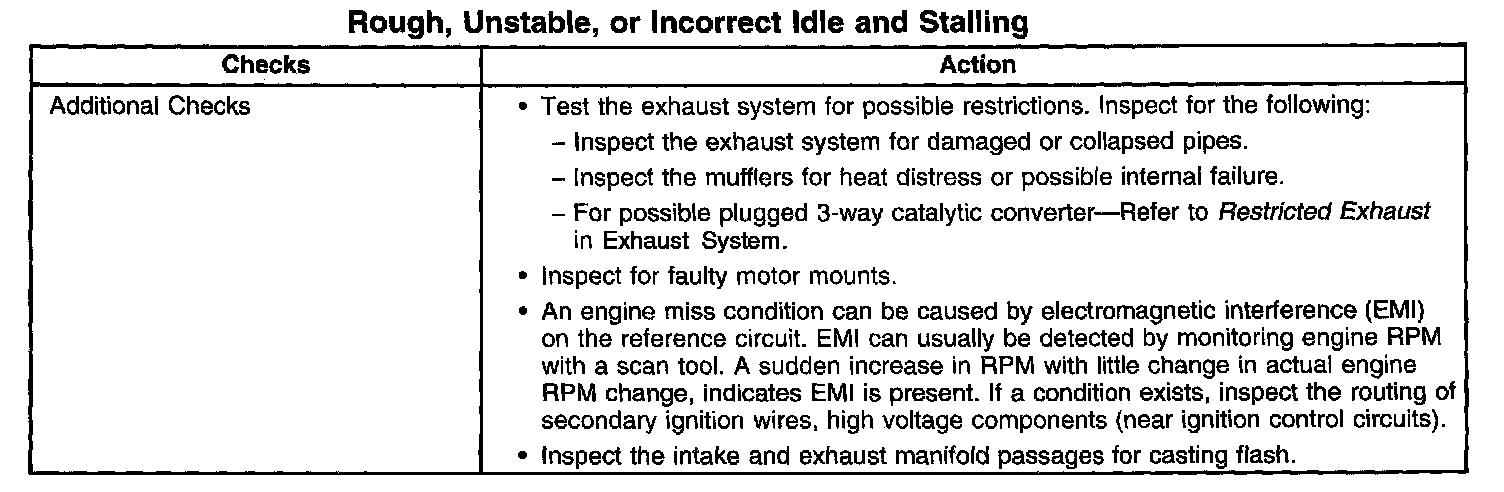 Rough, Unstable, or Incorrect Idle and Stalling