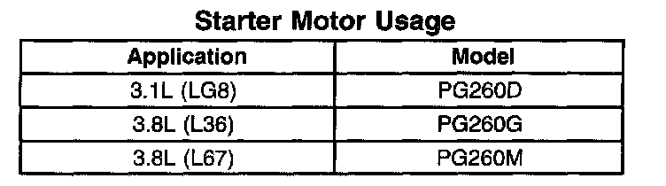 Starter Motor Usage: