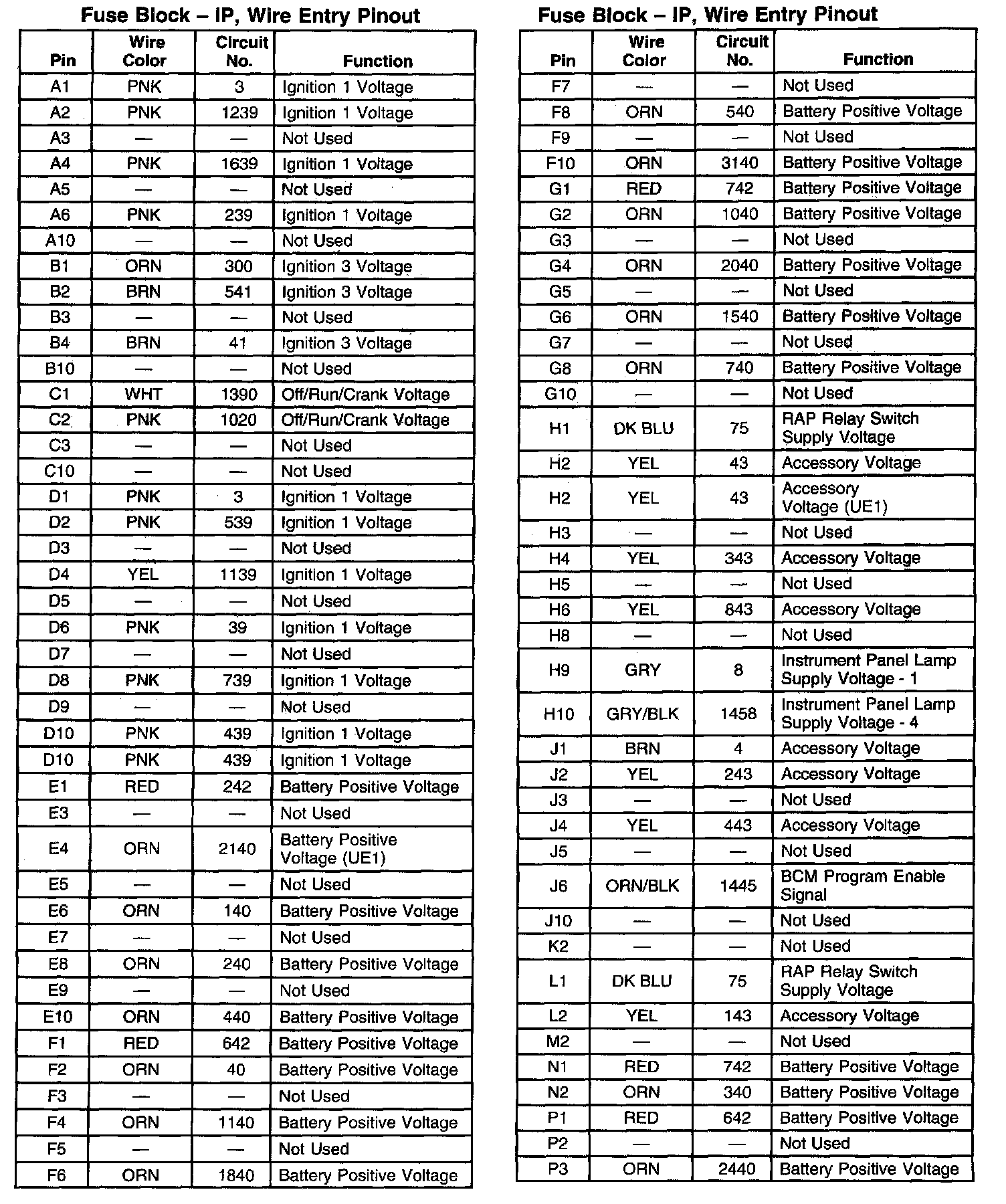 Fuse Block - IP, Wire Entry Pinout: